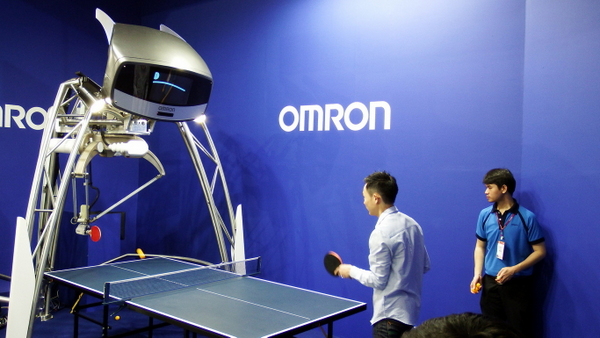 展會現場的一大亮點——會打乒乓球的機器人,吸引了眾多參觀商圍觀。