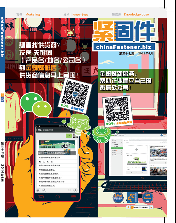 金蜘蛛傳媒官方微信,網(wǎng)羅全球最有價(jià)值的緊固件新聞,引領(lǐng)緊固件行業(yè)潮人趨勢(shì),自2013年1月開(kāi)通以來(lái),受到眾多業(yè)內(nèi)人士的關(guān)注,目前已吸引了近萬(wàn)名粉絲。內(nèi)容涉及緊固件行業(yè)最新資訊,企業(yè)訪談,技術(shù)交流,反傾銷盤(pán)點(diǎn),金蜘蛛展參展參觀指南,最新培訓(xùn)動(dòng)態(tài),行業(yè)預(yù)測(cè),行業(yè)分析報(bào)告,海外商情等。此外,在金蜘蛛微信輸入關(guān)鍵詞即可免費(fèi)查找緊固件、設(shè)備和其它配套供貨商信息。