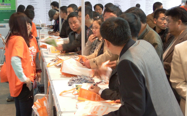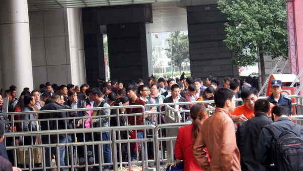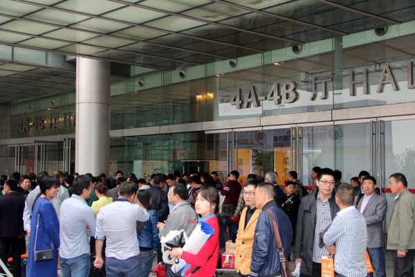 記者看到,展館外面已經(jīng)人潮涌動(dòng),成千上萬的專業(yè)觀眾都已在入口排隊(duì)等候。一開館,觀眾們便在工作人員的引導(dǎo)下涌入展館,數(shù)分鐘內(nèi)各展位前便迎來許多前來咨詢的專業(yè)觀眾,場(chǎng)面火爆。