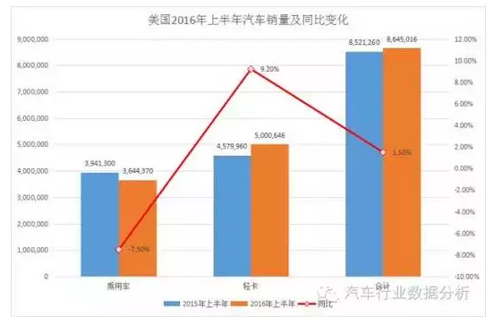 根據Autodata的公布的數據顯示,2016年6月美國汽車銷售1513997輛,同比增加2.5%;而整個上半年銷售8654016輛,同比增加1.5%?,F實了連續6年的增長,但是這大趨勢背后,卻是各個車企波瀾壯闊的競爭。