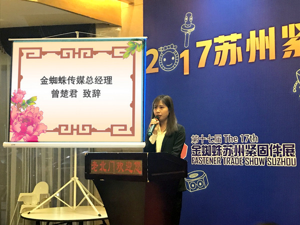 在本次展商聯誼晚宴上,金蜘蛛傳媒總裁余文輝先生、總經理曾楚君女士分別上臺致辭,對嘉賓的到來表示最熱烈的歡迎和最誠摯的問候,衷心感謝各位參展商對展會的傾力支持,推動了本屆蘇州緊固件展的成功舉行,希望大家在展會上有所收獲,大展宏圖!