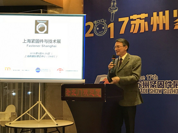 杜塞爾多夫展覽(上海)有限公司總經理曾耀德先生表示今天參觀了展會現場,感覺到了蘇州展在一天一天地進步,對于緊固件行業的進步感到欣慰。并向大家介紹了2016上海展的“優秀戰績”,同時也邀請大家參與2018年的上海展。