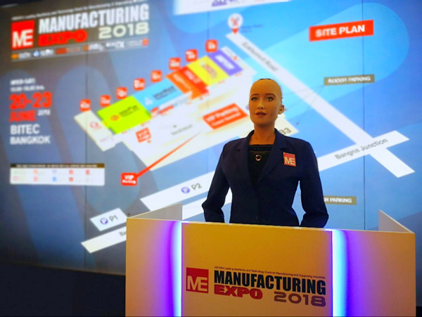 主辦方腦洞大開,由機器人Sophia介紹展會,能夠展現50個表情,采用Hanson Robotics最先進的人工智能技術,賺足觀眾眼球。
