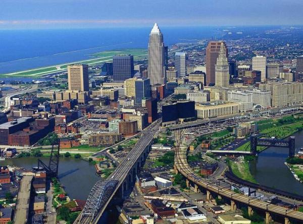 克里夫蘭位于伊利湖南岸,凱霍加河(Cuyahoga)的河口,昔日西儲(chǔ)地的范圍內(nèi),距離賓州100公里。是俄亥俄州凱霍加縣的首府。開(kāi)埠于1796年,歷史上由于運(yùn)河和鐵路交匯,成為了制造業(yè)中心。在大型工業(yè)衰退后,成為了金融、保險(xiǎn)和醫(yī)療中心。該市有著名籃球隊(duì)騎士隊(duì)。