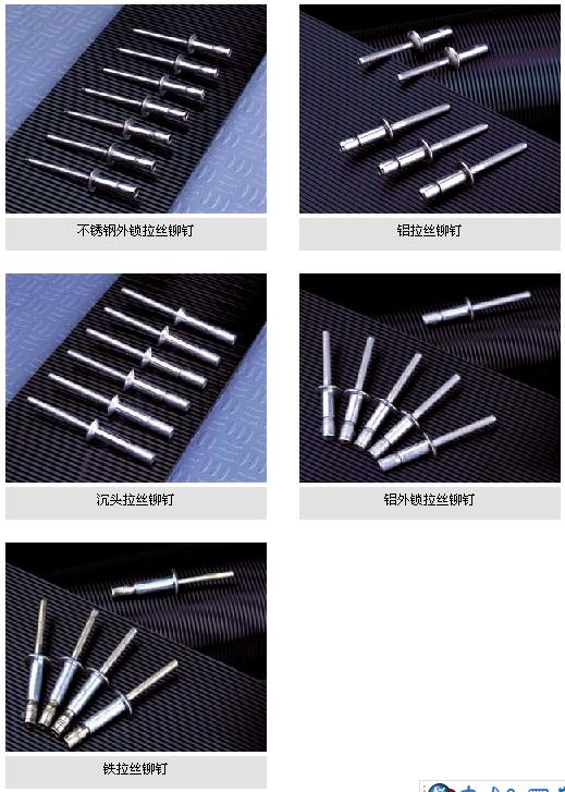 專業生產高品質的不銹鋼外鎖拉絲鉚釘,鋁拉絲鉚釘,沉頭拉絲鉚釘,鋁外鎖拉絲鉚釘,鐵拉絲鉚釘 。